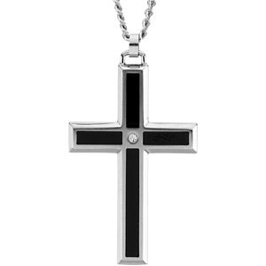 - Cross with Black Enamel Inlay and Diamond Set in Stainless Steel
